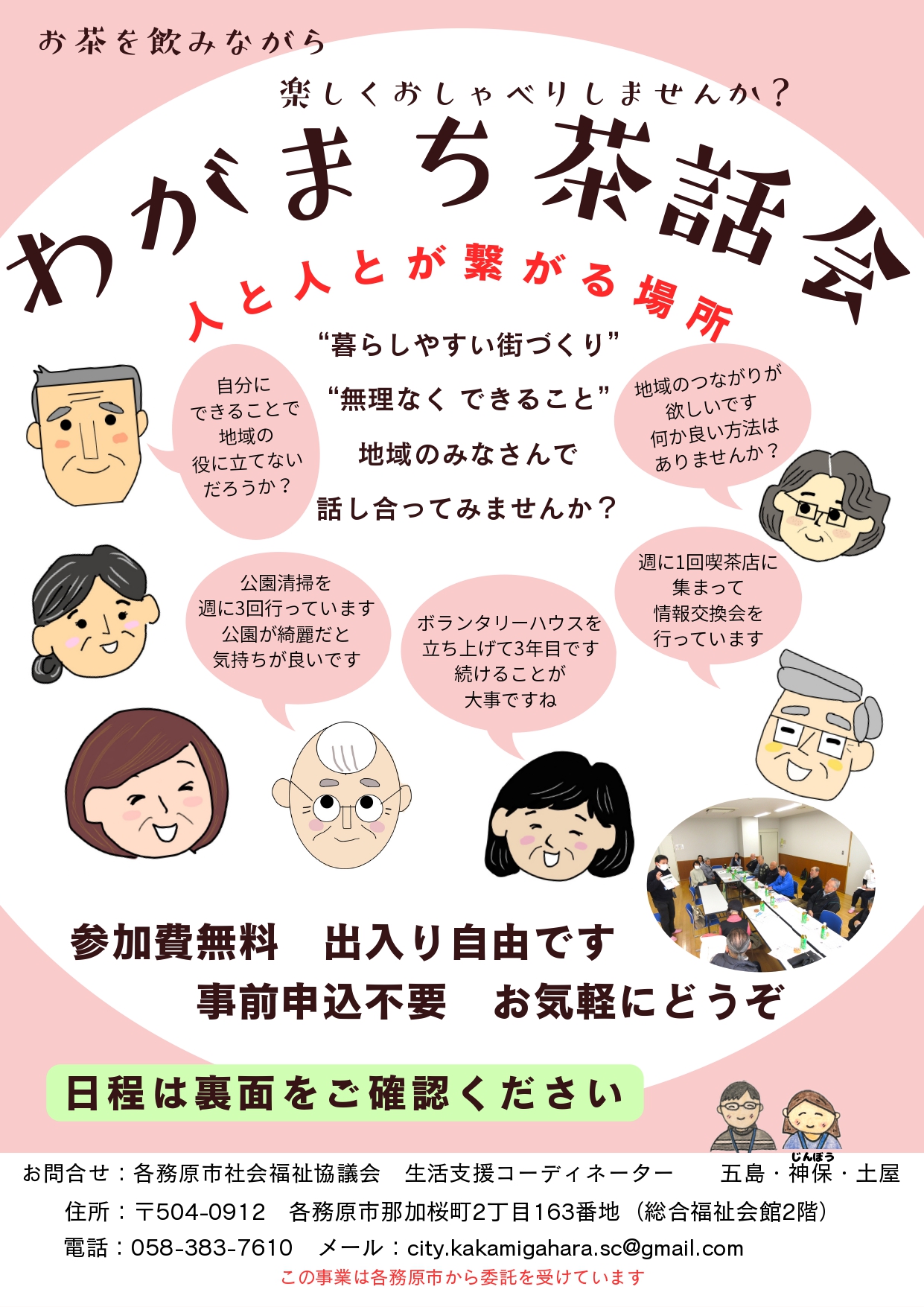 『わがまち茶話会』は、皆さんが楽しくおしゃべりして地域情報を定期的に交換する場です。